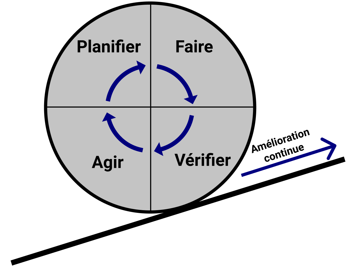 Notre logo représente l’expérience qui pousse l’amélioration continue pour grimper les échelons. Nous comprenons que l’amélioration requiert souvent plusieurs itérations. C’est exactement la différence que nous voulons faire dans chaque entreprise : permettre à celles-ci de progresser et de s’améliorer de façon continue. C’est pour cela que le O de notre logo représente la roue de Deming.